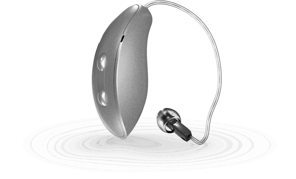 We typically recommend either a CROS or a BiCROS system. A CROS system consists of a single microphone and single receiver contained in two individual devices (one for each ear). The ear with little-to-no functional hearing is fit with the microphone-equipped device, and the ear with normal hearing is fit with the receiver-equipped device. Sound arriving at the ear with hearing loss will then transmit through a wireless connection to the receiver-equipped device on the normal-hearing ear — to help you hear sounds regardless of which side they’re coming from.